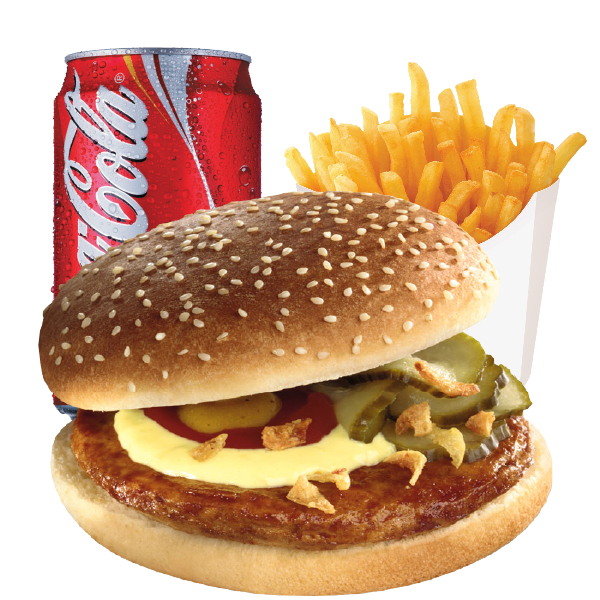 bicky met frietjes en frisdrank