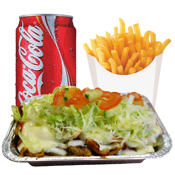 kapsalon met frietjes en frisdrank