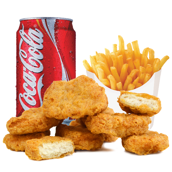Nuggets met frietjes en frisdrank